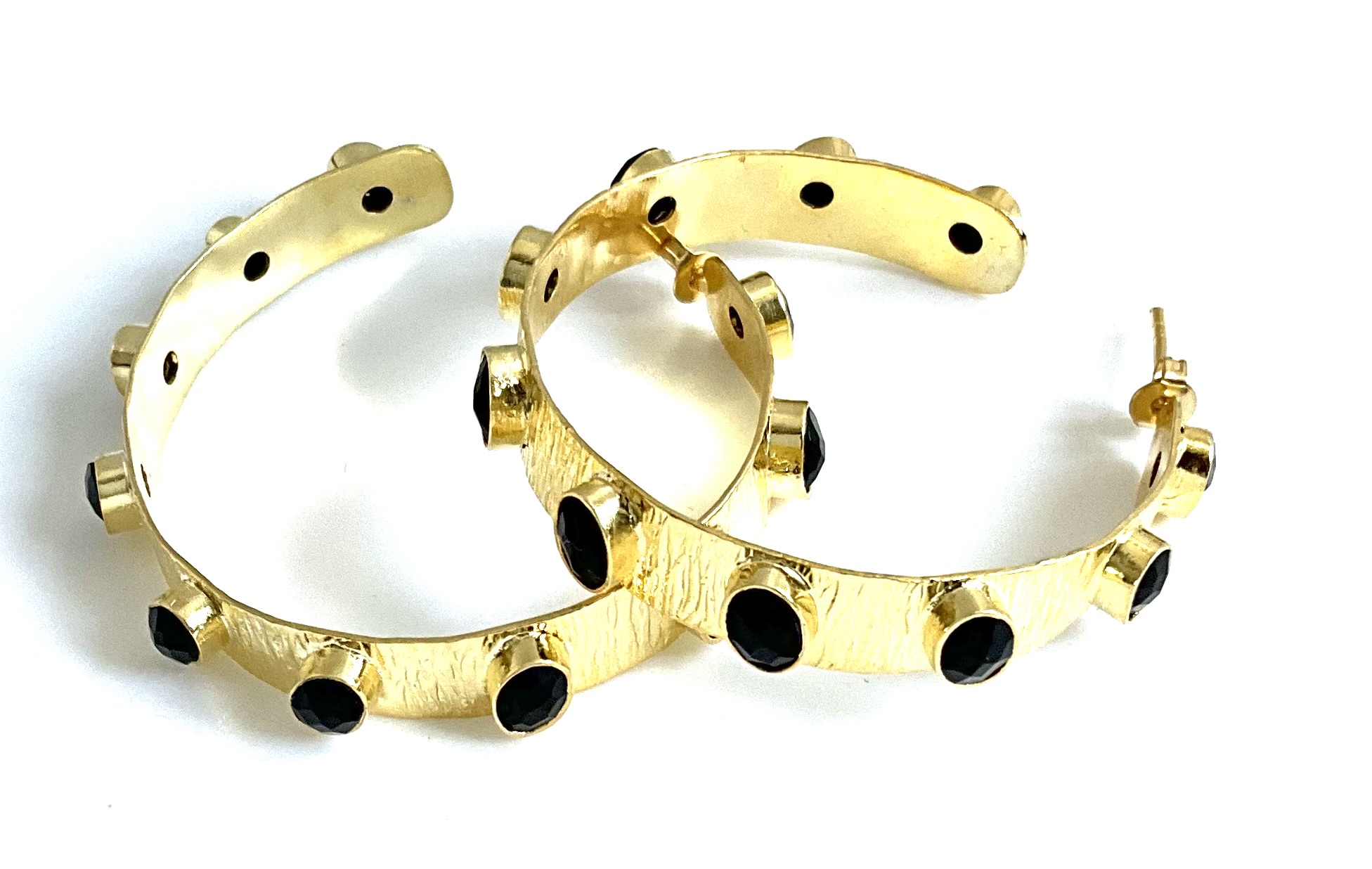 Laissez-vous envoûter par nos créoles en onyx noir plaqué or, une combinaison élégante qui ne se démode jamais.