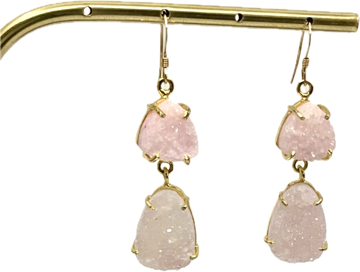 Pierres : Druzy Rose Pâle naturel, sélectionné pour sa cristallisation fine et sa teinte homogène.
