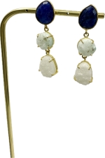 Pierres : Druzy naturel (amas de cristaux), teintes Bleu Roi, Bleu Ciel ou Blanc.