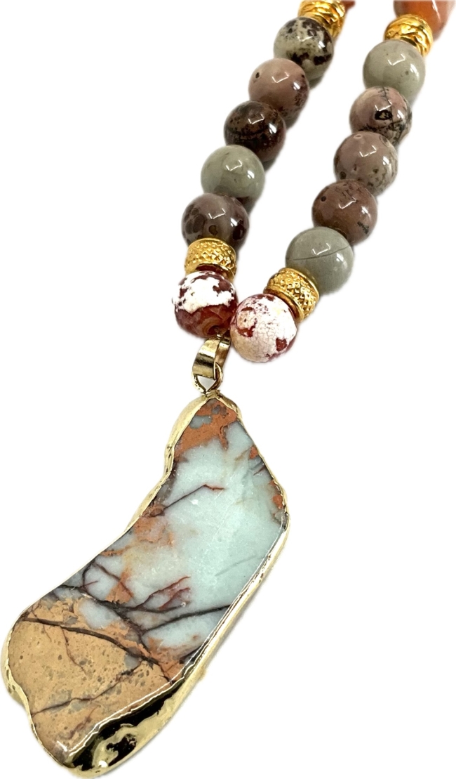 Pierres : Jaspe café, Amazonite et Agate de feu naturelles.